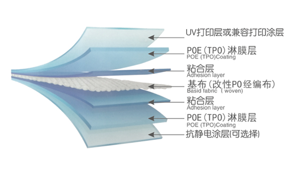 Base fabric: 500*500, 1000*1000D modified PO warp knitting or woven fabric